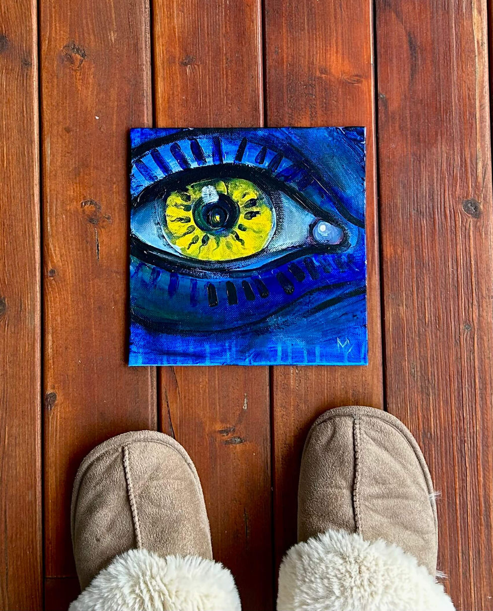 The idea of life is the great design of the Experimenter. Inside the eye, organic forms resembling sperm reflect the process of inception and the movement of life. They symbolize the birth of ideas and energy that shape the future. The gaze becomes an act of giving birth to thought, desire, and real...