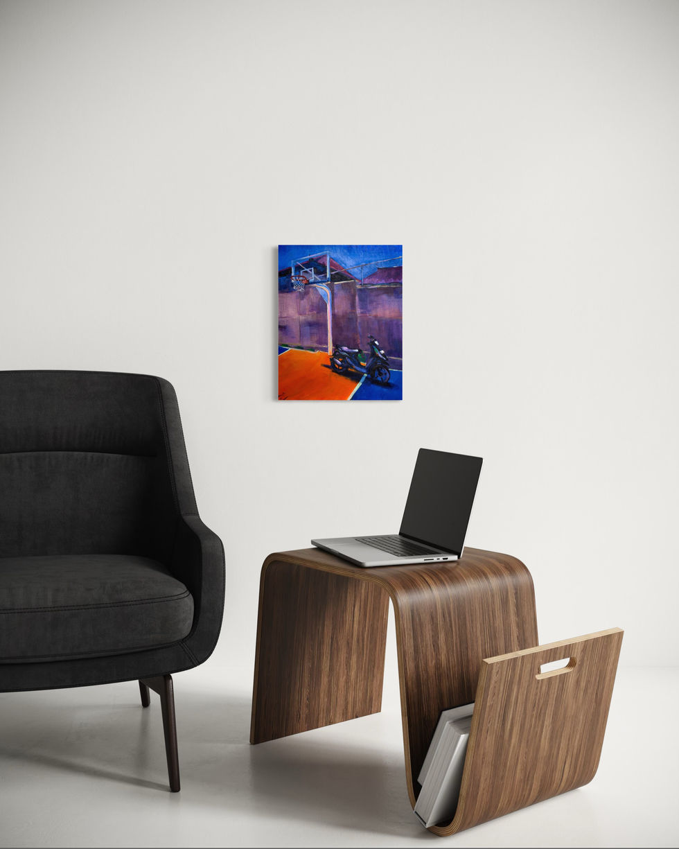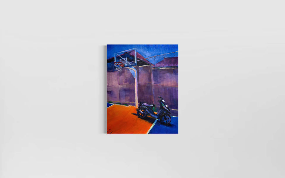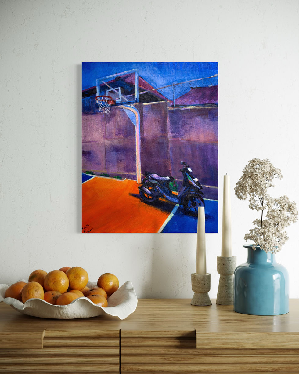 There is a flower called Plumeria, also known as Frangipani. It grows on Bali, and the painting depicts this very island. The color palette of the work reminded me of this flower, which is how the title emerged. In Hawaii, this flower is considered a symbol of joy and happiness.